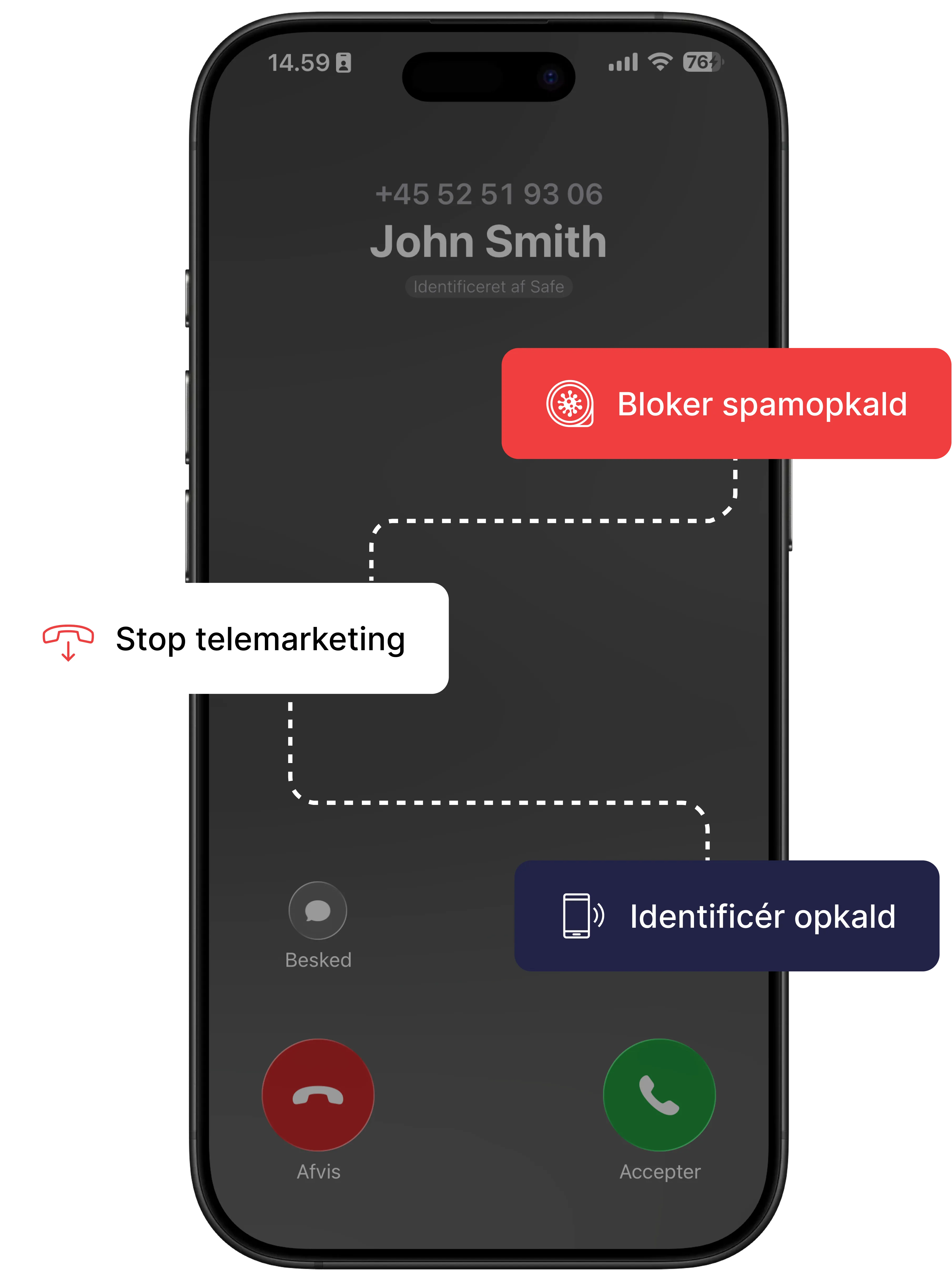 Safe Caller viser dig, hvem der ringer og blokerer spam eller svindelopkald.